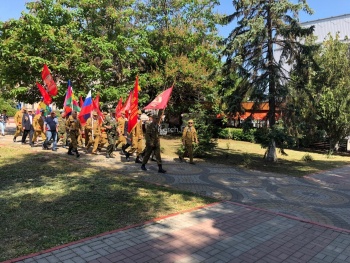 Участники пробега возложили цветы к памятнику в сквере Афганцев.