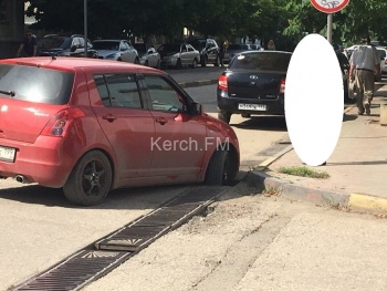 В Керчи несколько дней назад на улице Козлова иномарка провалилась в ливневку. Водитель транспортного вызывал помощь, потому что самостоятельно не смог достать машину. Об этом Керчь.ФМ сообщили очевидцы.