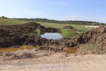 По обе стороны подходов к Крымскому мосту в районе Нижнего Солнечного и дач за 24-й школой канавы залиты водой. За полтора месяца с момента последней публикации об этом Керчь.ФМ так ничего и не изменилось.