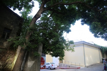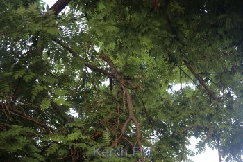 Редакция сняла на видео эту ветку, чтобы те, кто должен обеспечить безопасность запомнили и разглядели, откуда может прийти беда. Там же виден обвалившийся забор за зданием 2-й гимназии - ее закрыли и теперь, видимо, за зданием никто не смотрит. Когда за зданиями переставали смотреть в Керчи, они разваливались или превращались в музеи бестолковости, как, например, детский сад на автовокзале.