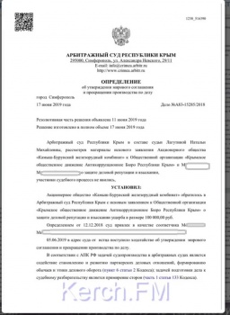 Антикоррупционное бюро и Камыш-Бурунский ЖРК подписали мировое соглашение по которому бюро не выплачивает 100000 ущерба за ущемление деловой репутации, а добываемый песок из Нижнечурбашенского хвостохранилища нетоксичен. Соответсвующее мировое соглашение утвердил Арбитражный суд Республики Крым 17 июня, - передает Керчь.ФМ.
