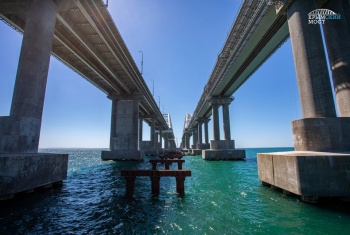 В Керченском проливе демонтируют рабочие мосты, которые соединяли все участки стройки самого длинного моста России. Сборно-разборные металлические конструкции 3, 5 года обеспечивали перемещение и работу тяжелой техники в акватории и бесперебойную доставку материалов на протяжении всех 19 км. Об этом сообщает инфоцентр «Крымский мост», - -передает Керчь.ФМ