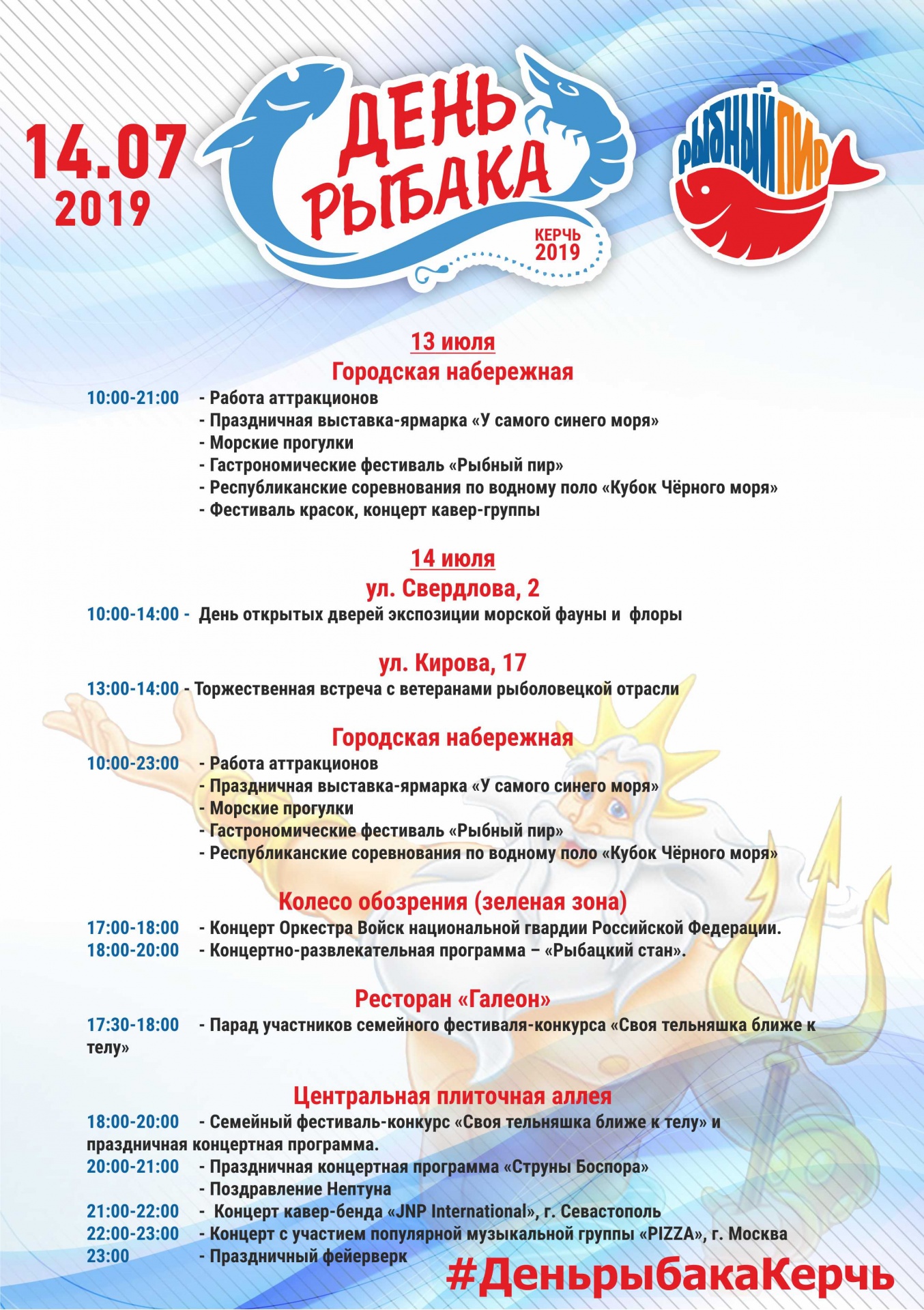 Основные празднования Дня Рыбака в Керчи пройдут 14 июля, - передает Керчь.ФМ. Какие концерты и мероприятия ждут керчан, а также куда можно бесплатно попасть смотрите в афише.