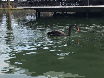 Чуть ниже расположен сквер и озеро, в котором живут утки и лебеди - чёрные и белые, плавает много мелких рыбок. По нему покататься можно на лодке - 100 рублей 20 минут и близко подплыть к лебедям.