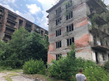 Следующий город, точнее поселок Акармара - это абхазская Припять. Во время грузинско-абхазской войны он подвергся нападению, обстрелу и блокаде. Люди ушли из города, но некоторые остались и живут там до сих пор. Гуляя по Акармаре можно увидеть удивительные аллеи с гортензией. Заброшенную школу, больницу. Стоят автомобили и мотоциклы, точнее то, что от них осталось.