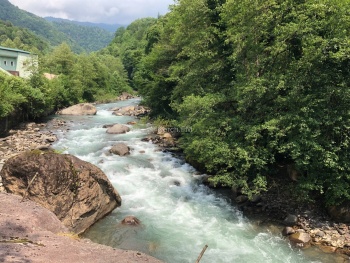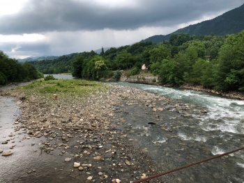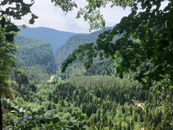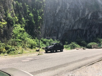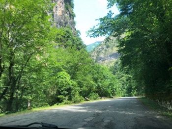 Также по дороге встречают Юпшарский каньон. Здесь остановились и полюбовались масштабом этой красоты. Там течет горная река (вдоль всей дороги), достаточно шумная и быстрая.