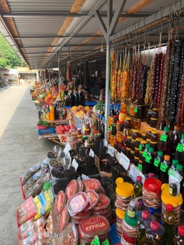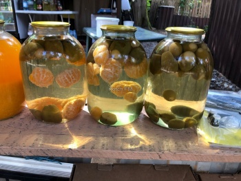 Вход на Дачу Сталина платный, но у нас не было желания ее посетить. Отправились обратно. Купили мед у мужчины, который продавал его, лежа на раскладушке. Мед вкусный.