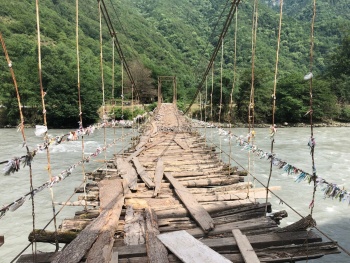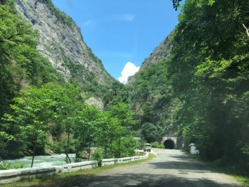 Все достопримечательности здесь расположены вдоль дороги. Подвесные мосты, водопады «Девичьи слезы» и «Мужские слезы», на которых мы не стали останавливать (не впечатлили после Акармары). Проехали поворот на Гегский водопад - стоит знак, что дальше ехать можно только на автомобиле 4 на 4.