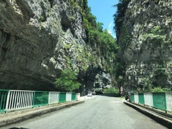 Кончено жемчужиной Абхазии считается озеро Рица и мы оставили его на десерт. Утром встали, из Нового Афона отправились в Рицинский заповедник. Перед въездом в заповедник - КПП и касса. Купили билеты по 350 рублей с человека, нам дали карту заповедника и поехали смотреть достопримечательности. Здесь есть и рафтинг, и подвесные мосты, и прыжки с тарзанки, дегустация меда и вина - все для туристов. Дорога асфальтовая, ехать можно спокойно.