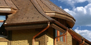 Под каждую кровлю можно подобрать подходящую водосточную систему, которая создаст гармоничный дует в целом. Современные системы водостока бывают медные, пластиковые или просто оцинкованные. Цветовая гамма, как правило, позволяет реализовать любое фасадное и кровельное решение.