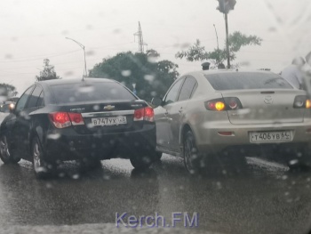 И, хотя в ДТП машины получили незначительные повреждения - царапины на дверях, авария собрала "тянучку" на несколько сот метров. Машины в очереди стоят вгору и, трогаясь с места, буксуют.