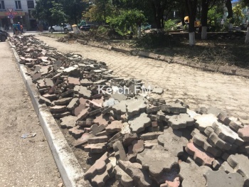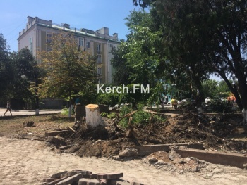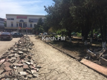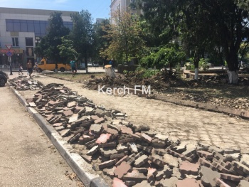 В Керчи продолжаются работы в Сквере около кинотеатра «Украина». Рабочие демонтируют плитку и бордюры, - передает Керчь.ФМ.
