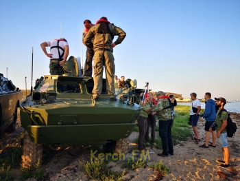 На берегу смельчаков уже встречали керчане и гости города. Всем желающим можно было самим побывать на бронемашине.