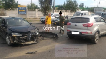 В Керчи 25 июля на пересечении улиц Еременко-Шлагбаумской произошла авария. Столкнулись автомобили марок «Volkswagen» и «Kia», - передает Керчь.ФМ.