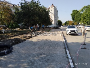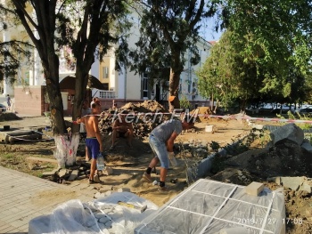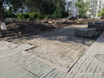 В Керчи активно ведется реконструкция сквера у кинотеатра «Украина», - передает Керчь.ФМ. Сюда уже завезли новую плитку, которую будут укладывать, также идет работа по замене коммуникаций.