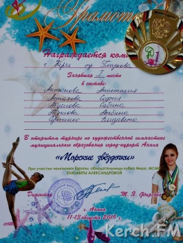 Наш город представляла команда Керченской Федерации художественной гимнастики. В личном зачёте Сереженко Елизавета завоевала 2 место, Астахова София 3 место. Также впервые наши гимнастки 2012 года рождения вышли на ковёр с групповым упражнением и одержали победу, 1 место Антонова Анастасия, Астахова София, Абушова Сабина, Абушова Альбина, Сереженко Елизавета. Поздравляем девочек с победами.