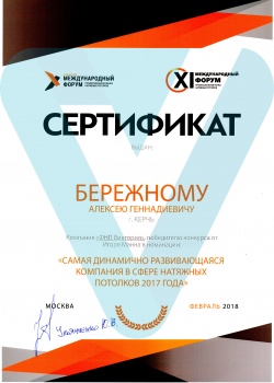 Компания, занявшая лидирующую позицию в Керчи в сфере натяжных потолков, по мнению керчан Народный бренд 2017 *