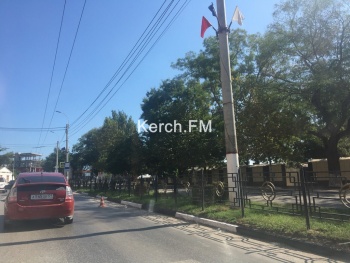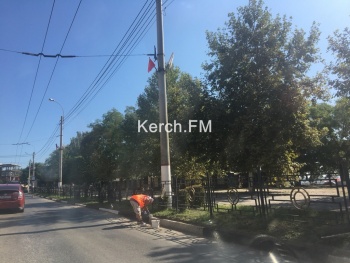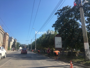 В Керчи 26 августа на улице Свердлова люди в жилетах красят бордюры. Их окрашивают в черно-белый цвет, - передает Керчь.ФМ.