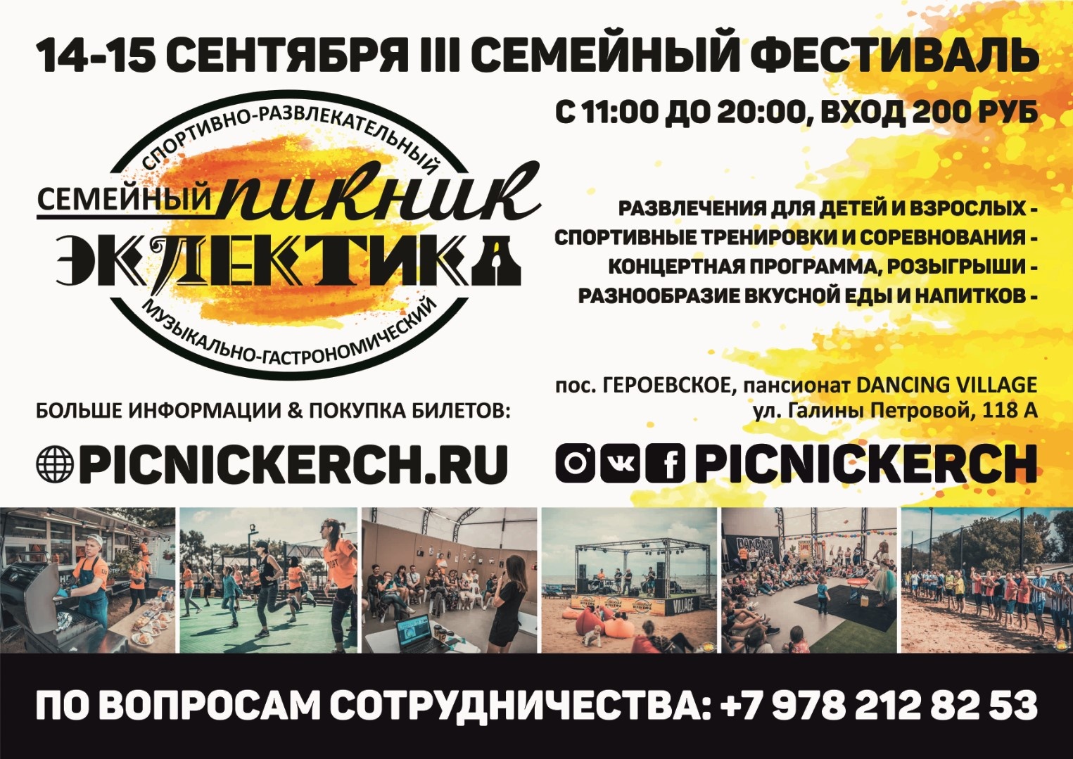 По вопросам сотрудничества и для получения любой информации о фестивале: +7 978 212 82 53, picnic@eclektik.ru