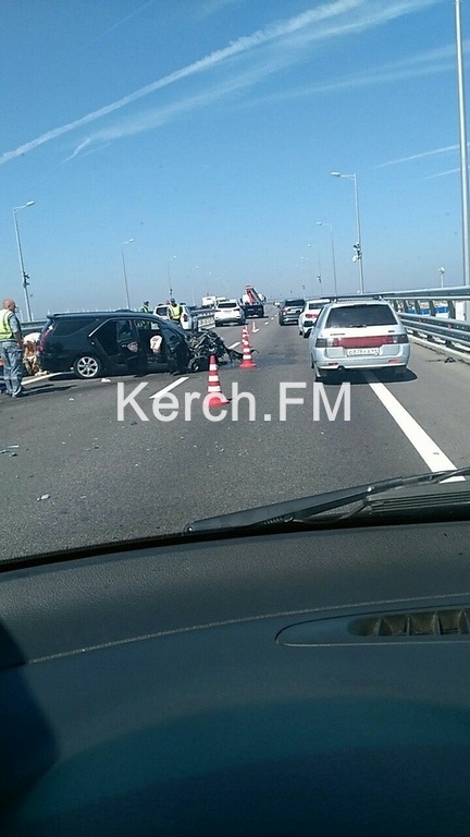 На Крымском мосту 30 августа произошла авария. Иномарка въехала в барьерное ограждение. Как сообщают очевидцы в соцсети, движение транспорта не затруднено, - передает Керчь.ФМ.