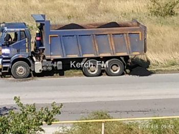 В Керчи на Индустриальном шоссе из грузовика на проезжую часть высыпался горячий асфальт. Об этом Керчь.ФМ сообщили очевидцы. Люди возмущены тем, что асфальт никто не собрал.