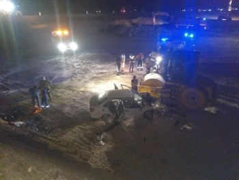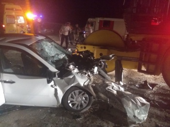 Ночью 6 сентября произошло ДТП на трассе «Таврида». В районе поворота на пгт. Ленино легковой автомобиль «Лада Гранта» съехал с трассы и совершил столкновение с катком. В результате происшествия один из пассажиров легкового автомобиля погиб на месте, 3 человека пострадало: водитель, пассажир «Лада Гранта» и водитель катка.