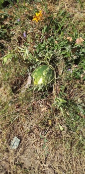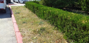 В Керчи на клумбе в Сквере Славы декоративных цветов практически не осталось - клумбы посохли и более напоминают степь. А вот для бахчевых культур здесь раздолье - уже вырос небольшой арбуз, - передает Керчь.ФМ.