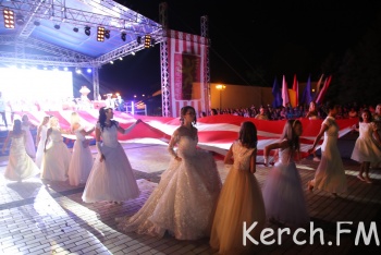 В Керчи 14 сентября на площади Ленина состоялось «Шоу керченских невест». Молодые девушки вместе с детьми на главной площади перед тысячами керчан устроили флешмоб. В завершении своего представления они развернули огромный флаг города, - передает Керчь.ФМ