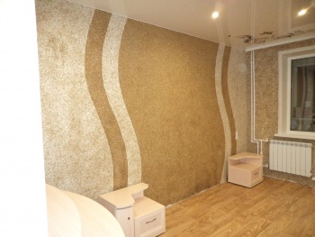 Жидкие обои или декоративная штукатурка! Данный материал отлично ложится на сложные конструкции, даже такие как колонны, стены с большим количеством выступов. За счёт светлых оттенков жидкие обои могут увеличивать пространство, хорошо вписываются даже в небольшие, угловые и северные комнаты.