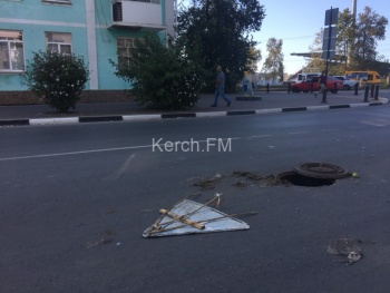 В Керчи на дороге по улице Самойленко открыта крышка люка, - передает Керчь.ФМ. Прямо перед люком поставили знак, который упал. Теперь водителей ничего не предупреждает о «ловушке».
