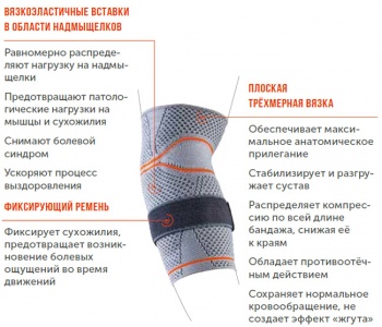 Динамический ортез ORLETT DEL-104 на локтевой сустав перераспределяет нагрузки с латерального и медиального надмыщелков плечевой кости на сухожилия, способствует облегчению боли при «локте теннисиста» или «локте гольфиста», а также при артритах и артрозах.