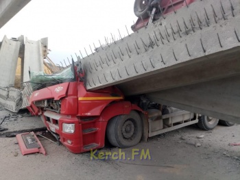 На трассе «Таврида» грузовик с поднятым кузовом снес путепровод