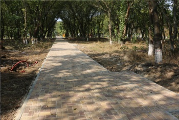 Постепенно в неблагоустроенной части парка появляются обновленные пешеходные дорожки. Продолжаются работы по укладке тротуарной плитки, фундамент под установку опор освещения готов на 50%.