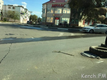 В Керчи на Самойленко просел канализационный колодец. Место провала оградили покрышками. Фотографии в Керчь.ФМ прислал постоянный читатель.