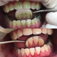 б) Биоревитализация препаратом, инъекции которого, восстанавливают контур десны, держат объем, создают эстетический эффект.