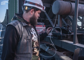 На испытуемых железнодорожных участках моста работают тяжелые технические железнодорожные составы. Каждый включает локомотив и 23 вагона-хоппера со щебнем суммарным весом 2, 4 тысячи тонн. Они перемещаются по разным схемам-сценариям, а приборы и датчики - тензометры, инклинометры и акселерометры - фиксируют состояние опор и пролетных строений.