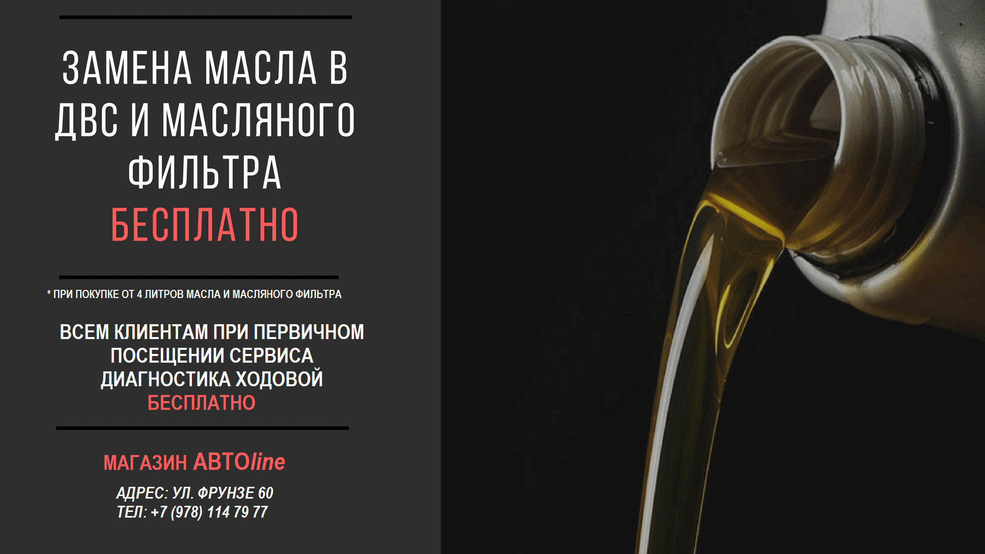 БЕСПЛАТНАЯ замена масла в двигателе при покупке от 4 литров масла и масляного фильтра*
