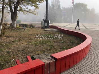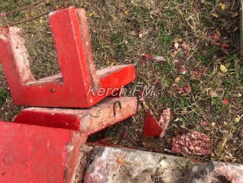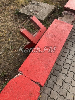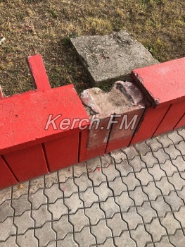 В Керчи в Сквере Афганцев неизвестные разломали часть парапета, где ранее был установлен фонарь. Об этом Керчь.ФМ сообщили постоянные читатели. части парапета валяются на клумбе.