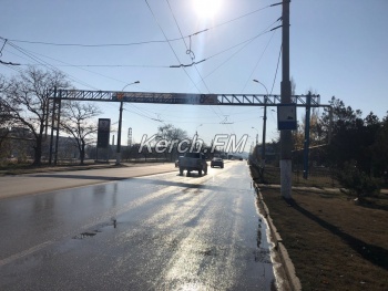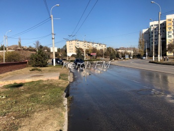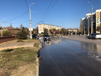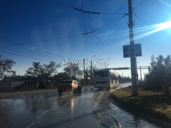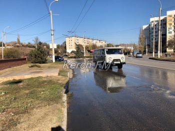 В Керчи 10 ноября, по проезжей части на Камыш-Бурунском шоссе течет чистая вода, - передает Керчь.ФМ.  Большим напором вода течет со стороны домов по Марат к Босфорскому кольцу. Здесь даже образовались глубокие лужи.