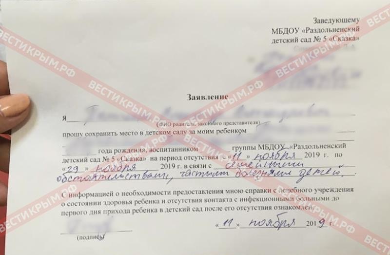 Отец пропавшей в Раздольненском районе Крыма шестилетней девочки известил руководство детского сада о предстоящем длительном отсутствии дочери. Копию заявления, которое он написал на имя заведующей детским садом «Сказка», опубликовал сайт «Вести Крым», - передает Керчь.ФМ.