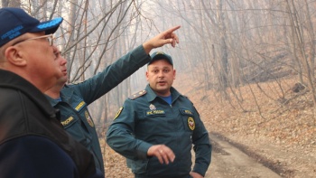 Тушение осложняется сильными порывами ветра, толстым слоем сухой листвы, а также тем, что личному составу приходится работать на сложных труднопроходимых участках. Угрозы населенным пунктам нет.