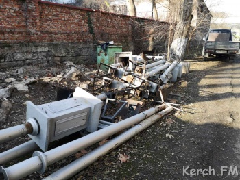 Во дворе школы устроили склад фонарных столбов с Митридатской лестницы, которые на улице ржавеют, и табличек, указывающих о важности охраны памятников архитектуры.