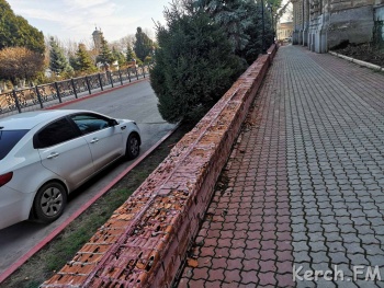 Теперь же здание разваливается. Подпорная стена вся разрушена - и это исторический центр города, куда приезжают туристы и первое, что они видят у подножия Митридата - разваливающийся памятник архитектуры и разбитую подпорную стену.