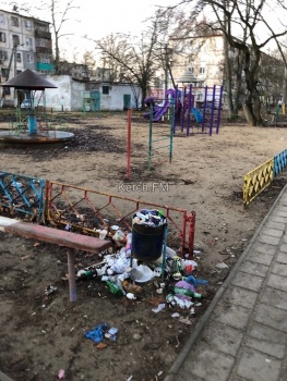 В Керчи у детской площадки по ул. Орджоникидзе, 115 образовалась свалка мусора. Урна переполнена, мусор лежит вокруг нее, - передает Керчь.ФМ.