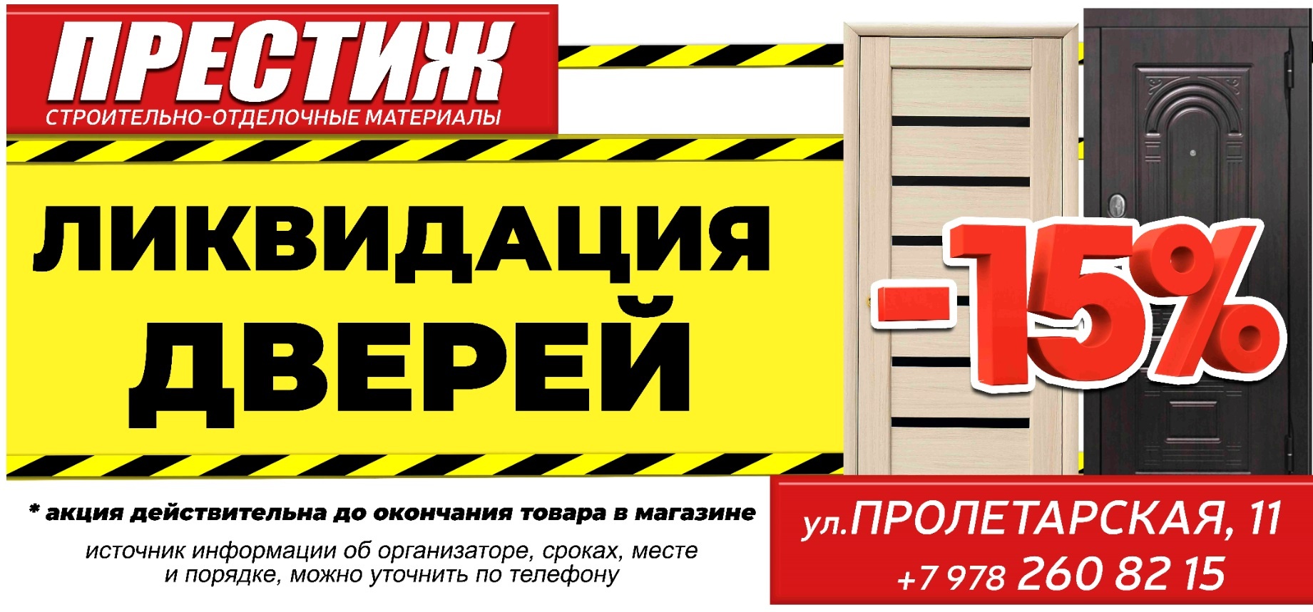 проводит распродажу «ЛИКВИДАЦИЯ ДВЕРЕЙ» -СКИДКА 15 % !!!