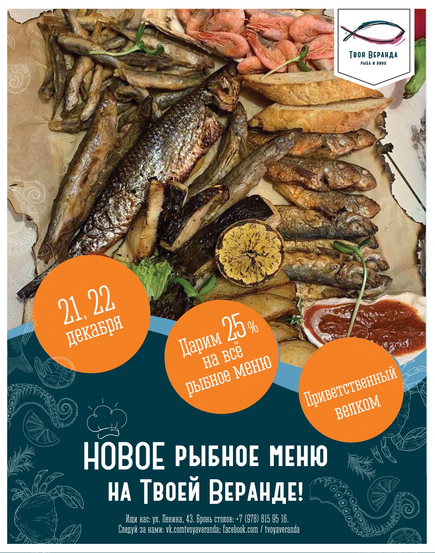 «Твоя Веранда Рыба и вино» жарит, солит, коптит, томит рыбу, с 10.00 до 22.00 каждый день!