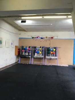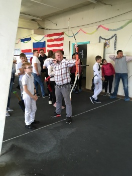 Необычность заключалась в том, что соревновались команда детей с командой родителей; участникам соревнований нужно было поражать воздушные шарики.