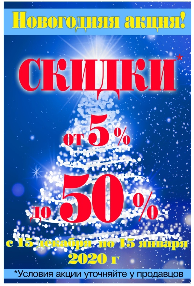 С 15 декабря 2019 года по 15 января 2020 года скидки от 5 до 50%.