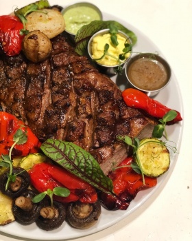 • ростбиф (1000 г) 1950₽ / в подарок 3 вида соуса (фирменный, горчичный, кукурузный майонез) и гарнир — овощи гриль (320 г);