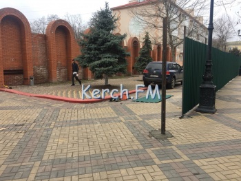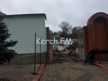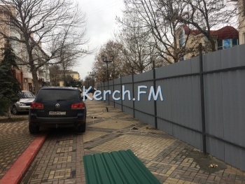 В Керчи на улице Ленина, около здания МВД, устанавливают забор. Как журналисту Керчь.ФМ сообщили рабочие, его устанавливают временно. За забором, на территории парковки МВД, собираются строить здание для ФСБ.